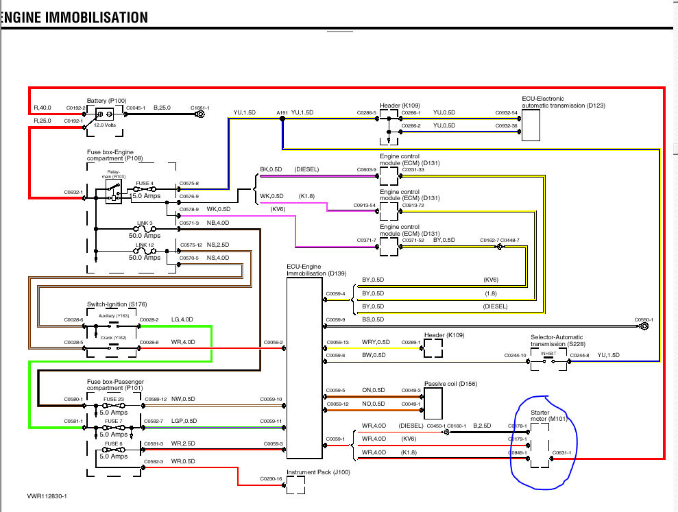 Une fois les contrôles de base faits,tu peux,en t'aidant du schéma donné par gisele,faire un shunt avec un câble de section identique entre les voies C0059-1 et C0059-2 (Attention,section 4,0) du connecteur du boitier d'imobilisation (D139 sur le schéma).Une fois le shunt installé,tu essayes de démarrer.N'insiste pas si le démarreur tourne.Tu pourrais générer d'autres problémes.Ce n'est que pour le test et si cela fonctionne,soit tu bricoles un systéme paralléle avec un relais soit tu cherches la panne en profondeur.