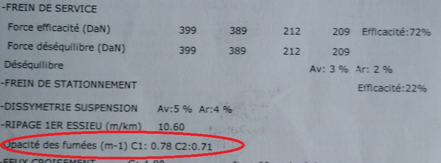 Résultat, quand j'ai demandé le taux d'opacité des fumées, le contrôleur m'a dit: